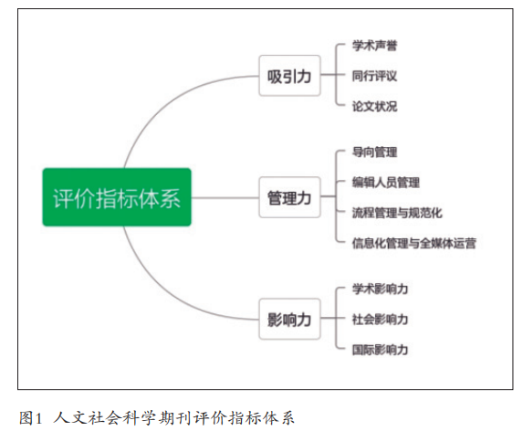 该标准打破了“标准荒”,探索了以吸引力(Attractive Power)、管理力(Management Power)和影响力(Impact Power)三个维度为基准,坚持定量与定性并重,构建了科学、透明的人文社科期刊评价新体系。指标体系如图1所示。