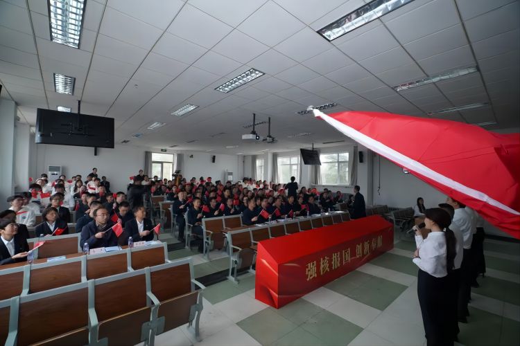 铿锵有力的声音,久久回荡在核工业学院房山校区的阶梯教室中,那是胸怀祖国的满腔赤诚,更是强国有我的铮铮誓言。